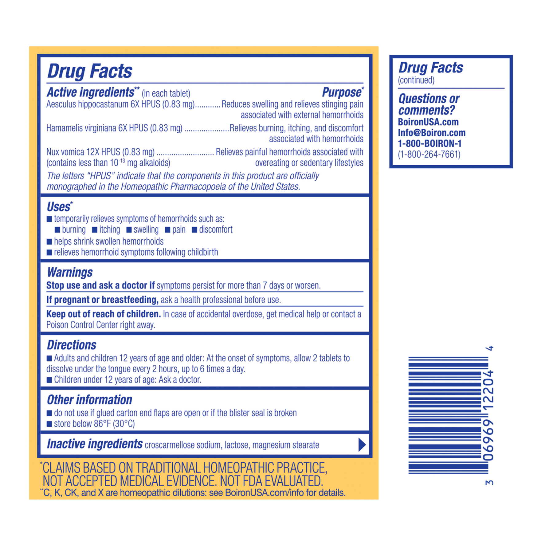 Recommended for adults ages 12 and up, HemCalm Tablets won’t interact with other medications or supplements, so they are safe to use at the first sign before discomfort becomes more disruptive. They’re also suitable for hemorrhoid symptoms following childbirth.*†Each box contains 60 unflavored tablets sealed in blister packs for easy use. This medicine is gluten-free and contains no artificial sweeteners, flavors, colors, or preservatives. Use with other Boiron hemorrhoid relief products like HemCalm Suppositories for internal hemorrhoids and HemCalm Ointment for soothing, external relief.