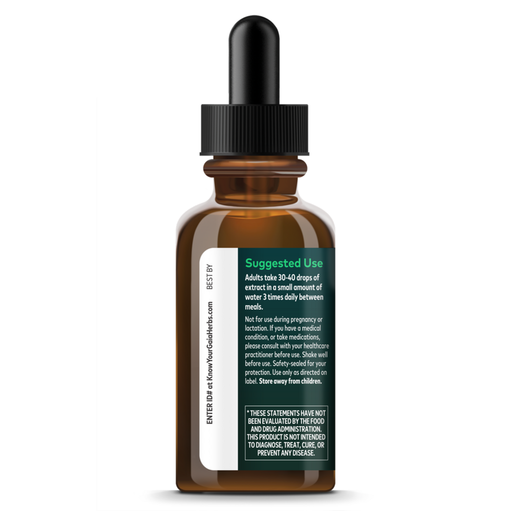Take 30-40 drops of extract in a small amount of warm water 3 times daily between meals. Up to 10 day supply