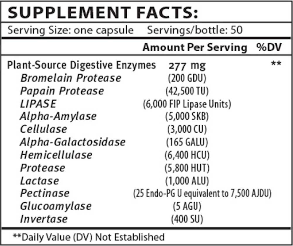 | Plant-Source Digestive Enzymes: | 250 mg | |
