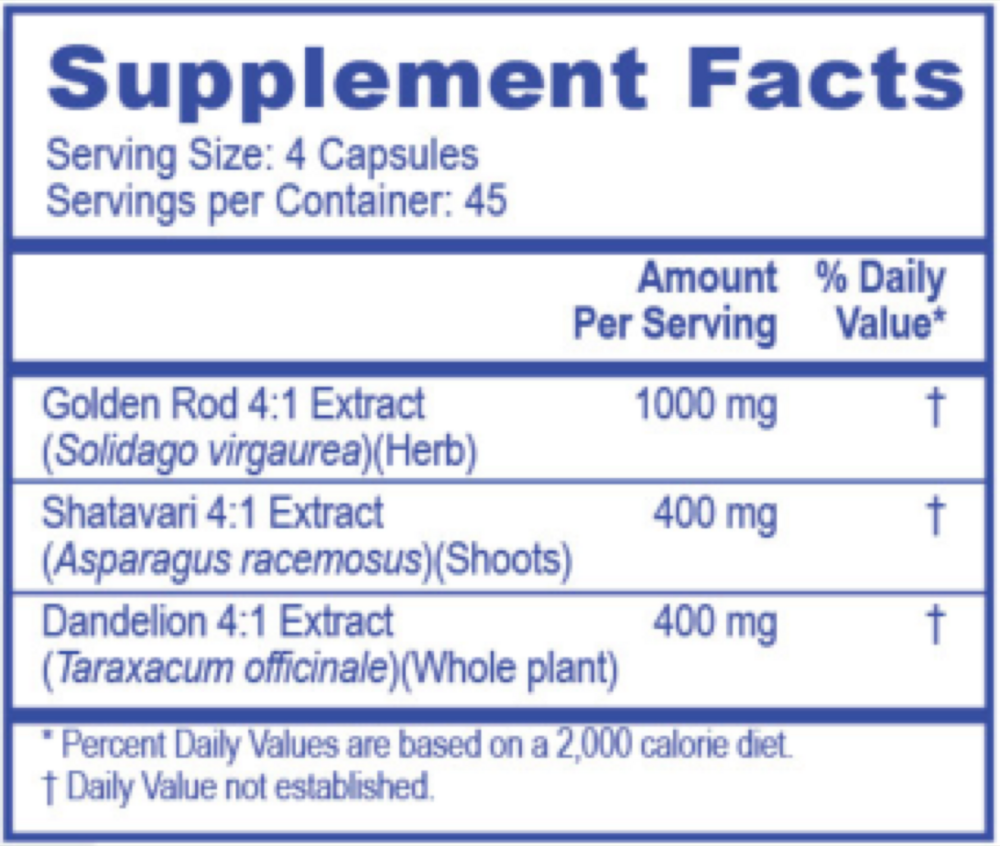 | Golden Rod 4:1 Extract (Solidago virgaurea) (herb) | 1000 mg | |