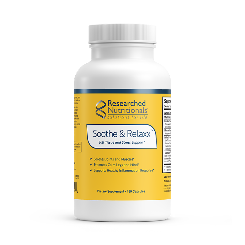 Soothe & Relaxx™ combines soft tissue, joint, and muscle support with the proprietary Relaxx™ Complex to calm the body and mind.
