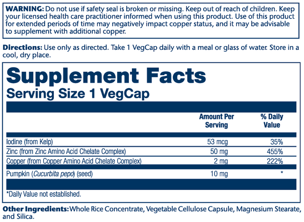 | Iodine (from kelp) | 53 mcg | 35% |