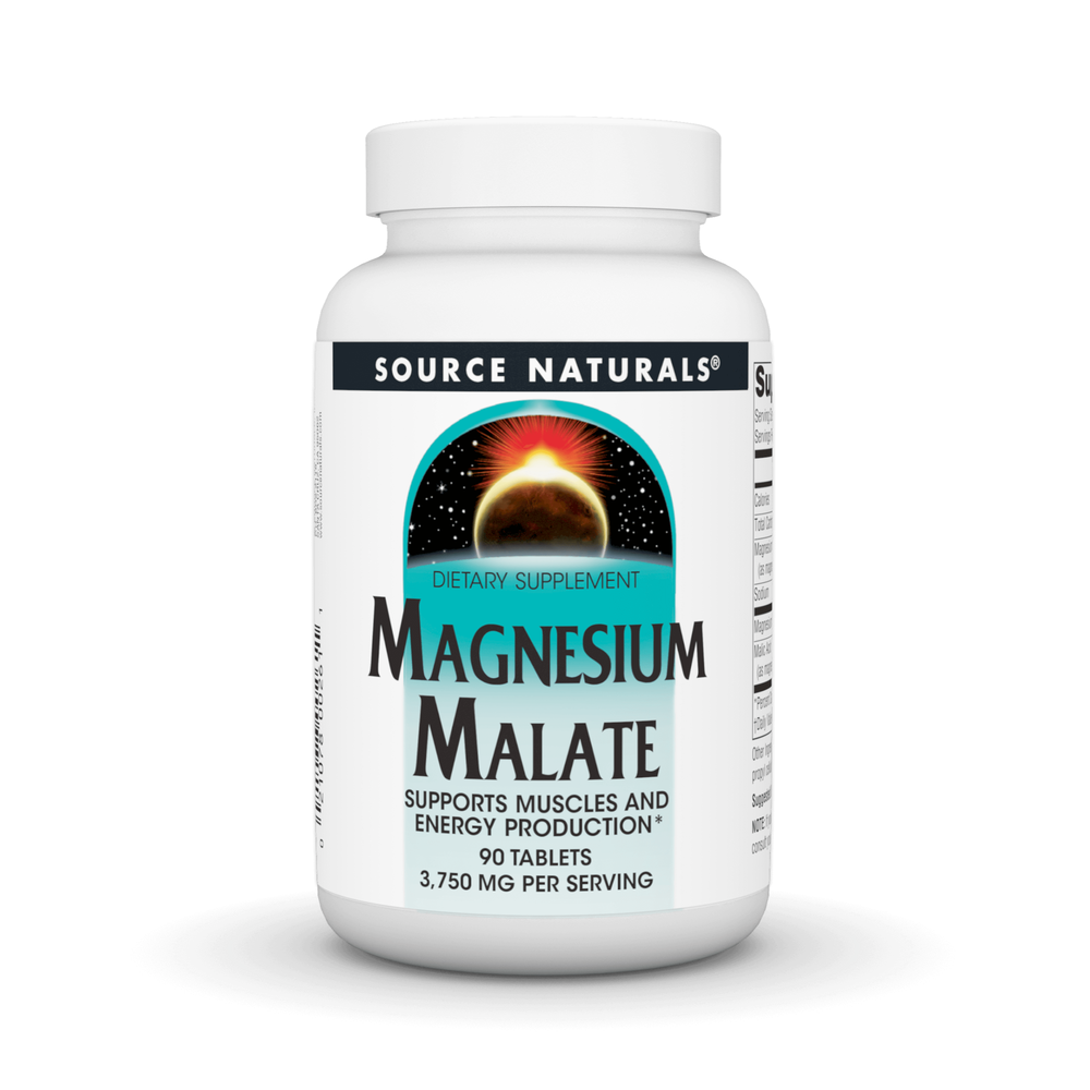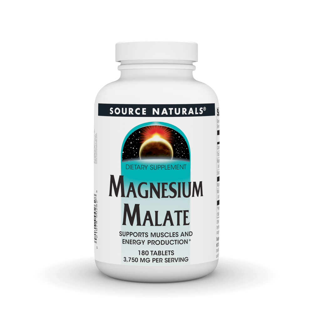 Source Naturals Magnesium Malate is a compound of magnesium and malic acid. It supports proper muscle function, cardiovascular health, and energy production. Malic acid is a natural fruit acid that is present in most cells in the body and is an intermediate in the Krebs cycle, where energy is captured during the metabolism of carbs and fats. Magnesium is an essential cofactor for over 300 enzymatic reactions in metabolism, ATP synthesis and energy production. Magnesium plays important roles in muscle relaxation, because of its function as a cofactor for enzymes and because of its ability to counterbalance calcium in the cell.*