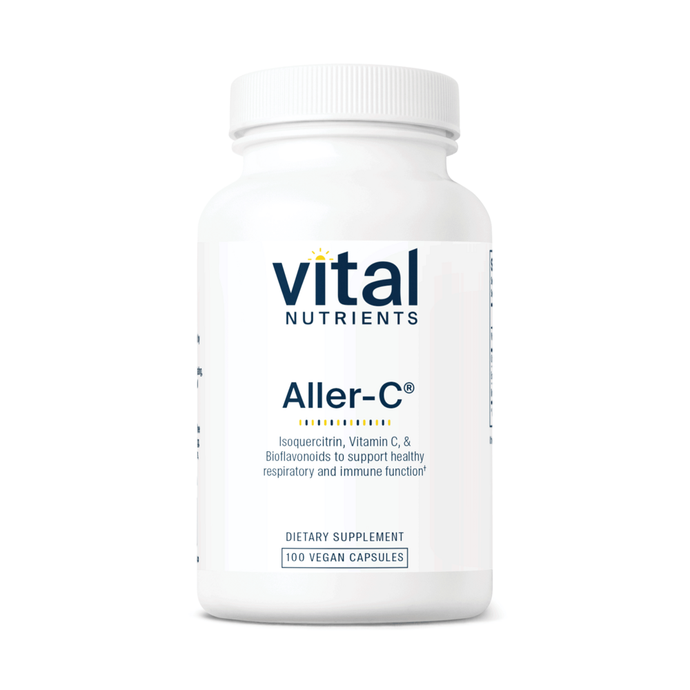 Best-selling supplement Aller-C with Isoquercitrin, Vitamin C, Bromelain, and Bioflavonoids to Support Healthy Respiratory and Immune Function* is a potent and effective combination formula designed to help maintain normal respiratory and sinus function.* Aller-C features Isoquercitrin, a clinically studied nutraceutical offering the benefits of quercetin with superior absorption and bioavailability, to help promote cellular antioxidant defenses.* Aller-C’s combination formula also includes Vitamin C for immune support, Citrus Bioflavonoids to help maintain capillary stability, and Bromelain to promote healthy inflammatory balance.* This supplement can be used for maintaining and supporting the proper levels of enzymes and physiological factors necessary for normal respiratory and sinus function during seasonal challenges.*